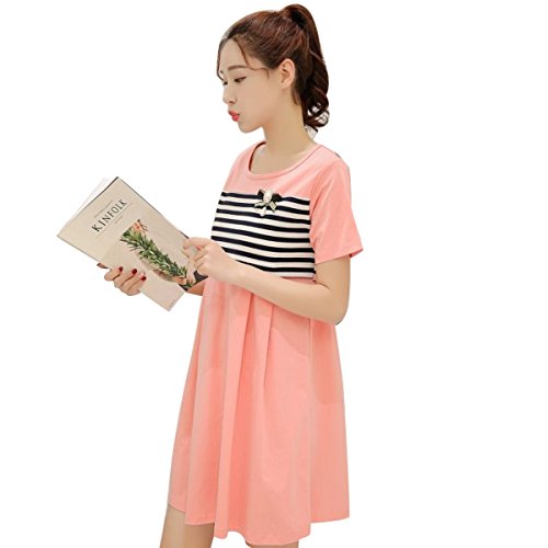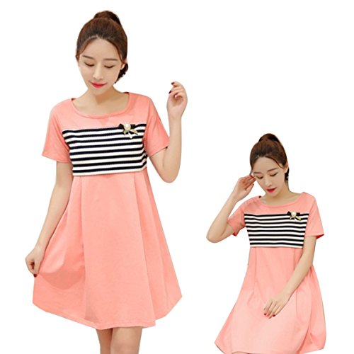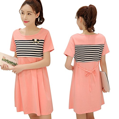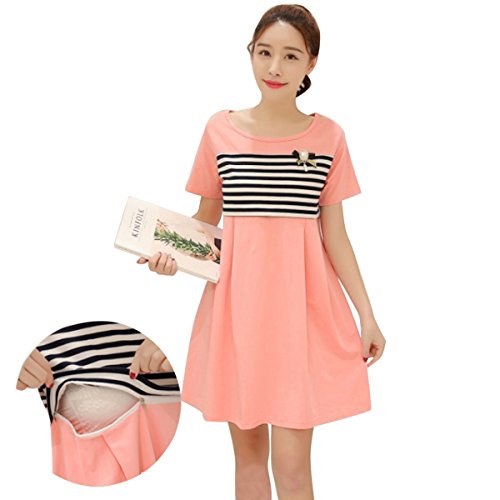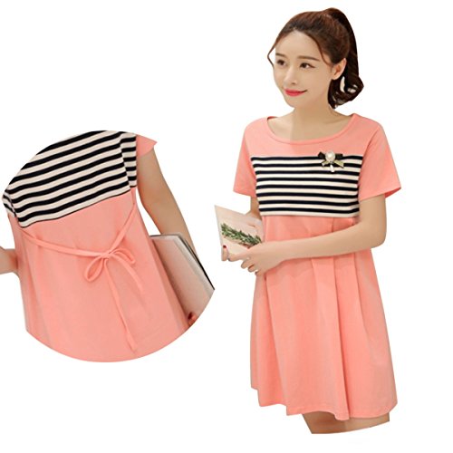 マタニティ 授乳服 ワンピース 授乳服可愛い[服を 着たまま 簡単 授乳] 赤ちゃん との 外出に! マタニティウェア授乳口付き 大きくサイズ (XL, ピンク)