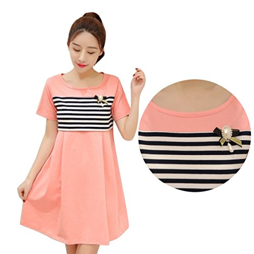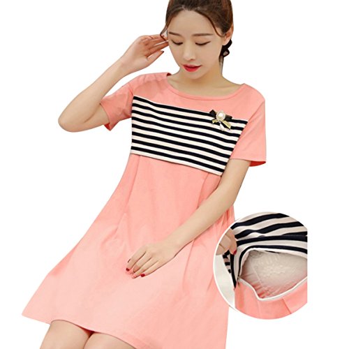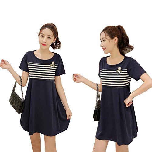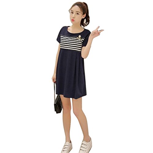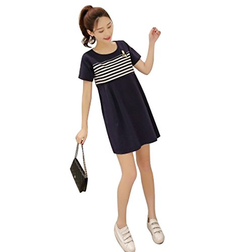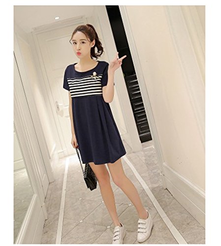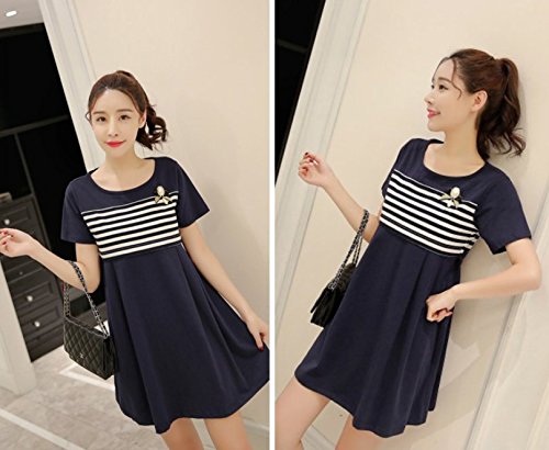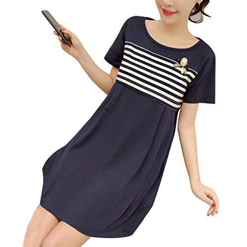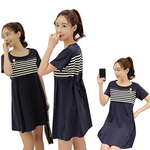 マタニティ 授乳服 ワンピース 授乳服可愛い[服を 着たまま 簡単 授乳] 赤ちゃん との 外出に! マタニティウェア授乳口付き 大きくサイズ (M, ネイビー)