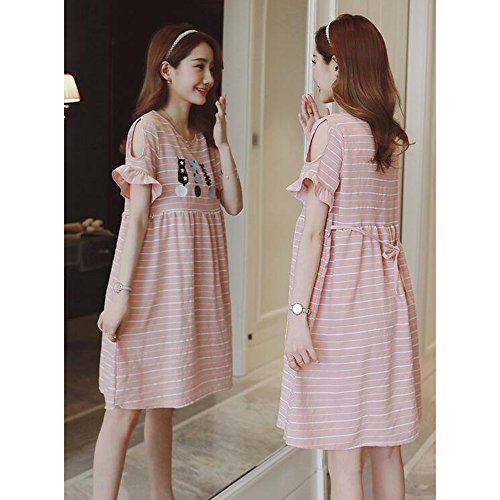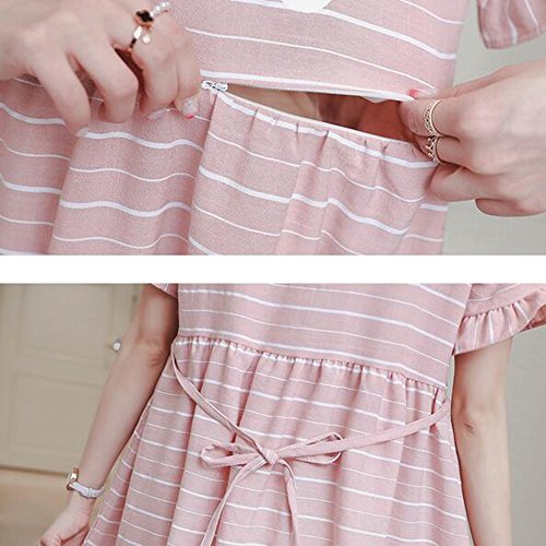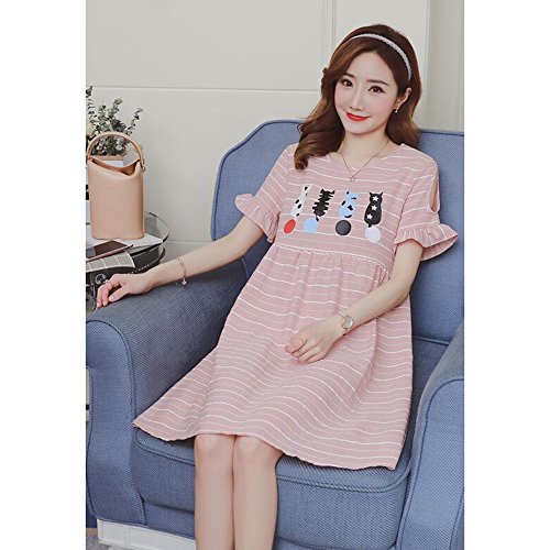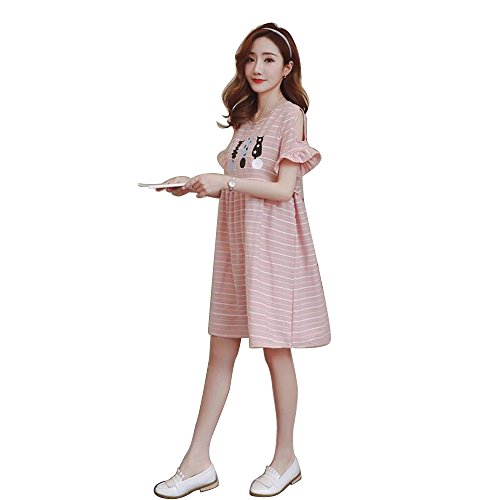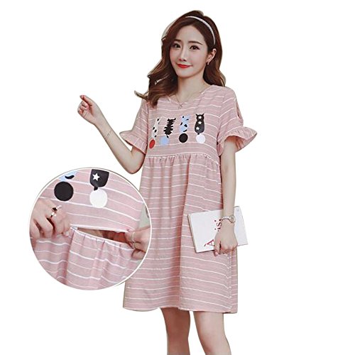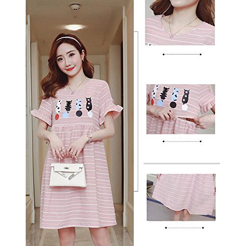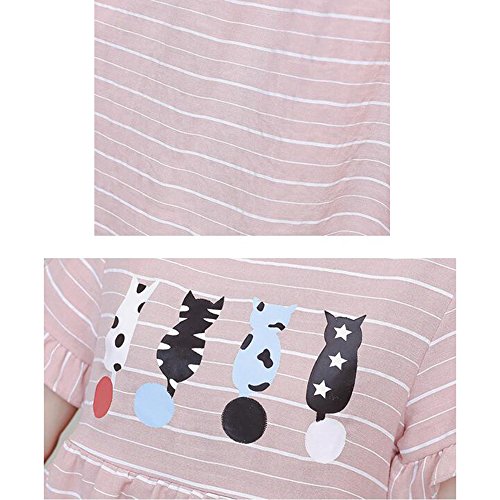 授乳口 ファスナー 楽々 マタニティ ワンピース体型カバー 猫デザイン 授乳服 半袖 着やすい可愛い 産前 産後 (ピンク, XXL)