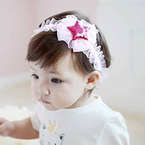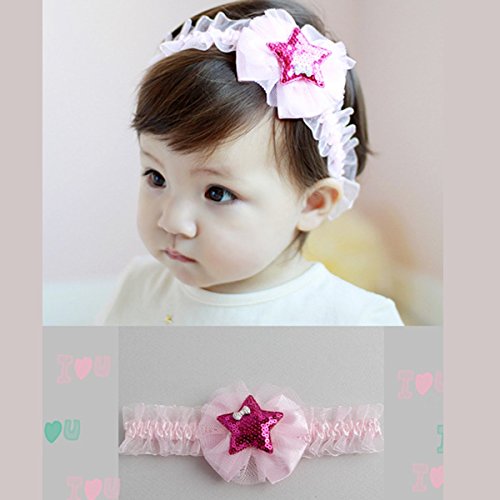 「二つセット」 2015年新品♪可愛いキラキラ星星 子供用髪飾り フラワー赤ちゃんもオシャレに♪ベビー キッズ ヘアバンド (ピンク)