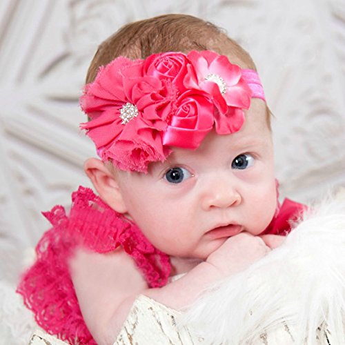 新生児 赤ちゃん 大型の花 デザイン 髪飾り ベビー&キッズ ベビー ヘアバンドお花柄 (レッド)