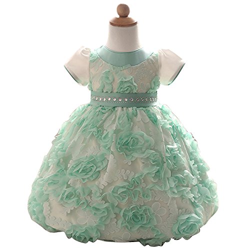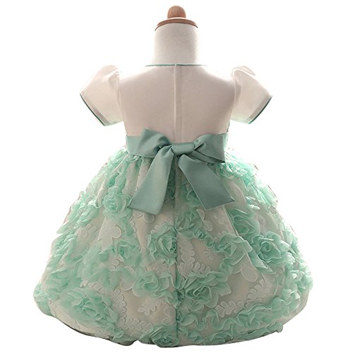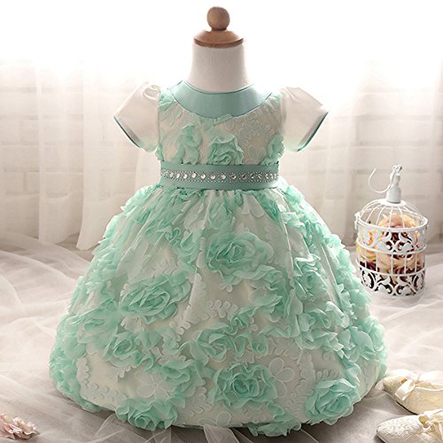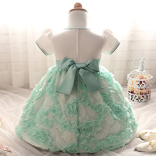 ベビーワンピース ベビーレースドレス 子供ドレス花柄お姫様ドレスリボン飾り 記念撮影 誕生日 百日祝い 結婚式 (グリーン, 90CM)