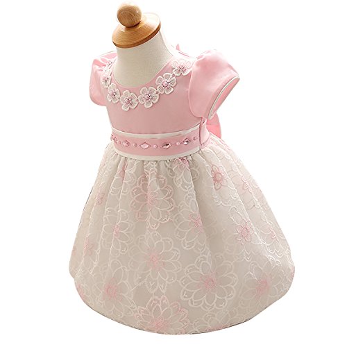 ベビー キッズ プリンセス ドレス子供 ワンピース赤ちゃん お宮参り スカートふんわり感 可愛い 花柄 女児 ガールズ (ピンク, 80cm)