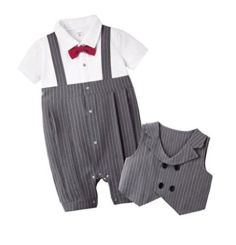 ベビー キッズ 赤ちゃん 子供服 重ね着風フォーマル 紳士風 男の子 半袖 蝶ネクタイ付 ベストとロンパース2点セットカバーオール春夏 結婚式 お宮参り 七五三 節句 入園式 入学式 出産祝い ギフトBaby0167