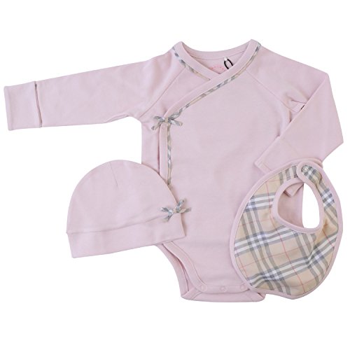 (バーバリー) BURBERRY コットン スリーピース ベイビー ギフトセット ピンク ボディスーツ ハット ビブ セット (9M)