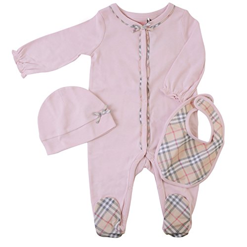 (バーバリー) BURBERRY コットン スリーピース ベイビー ギフトセット ピンク オールインワン ハット ビブ セット (9M)