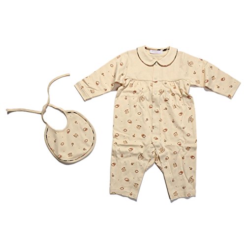 【商品詳細】 サイズ(パジャマ):100 肩幅21.5cm,着丈42cm,身幅27.5cm,袖丈23.5cm サイズ(前かけ):横18×縦18cm 素材:綿100% カラー:ベージュ系 【商品状態】 未使用品・新品
