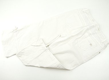 ウェスト内側部分に少し毛玉がありますが、目立つ汚れなくまだまだ活躍してくれそうです。裾のデザインが可愛いストレッチ感のあるパンツです。(実寸総丈:約62cm)