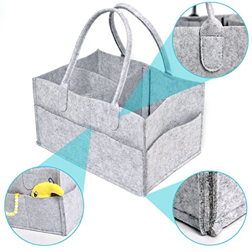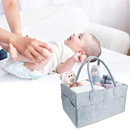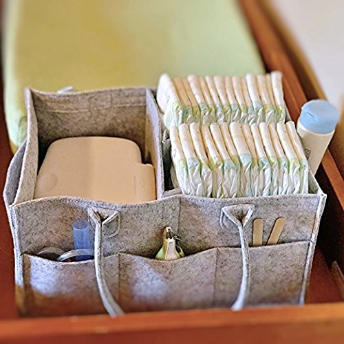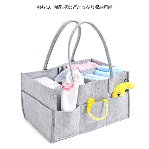 - 【デザイン】マルチポケットデザイン、中に仕切りがあるので、おむつ、おしりふき、哺乳瓶や軟膏など薬やクリーム、おもちゃなど一目で分かるように整頓できます。おむつが少なくなってきても安定して収納しておくことができ、物が倒れたり転がったりすることを防ぐ事ができます。折りたたむことができるので、使わない時や旅に持っていく時は簡単に折りたためればいいです。 持ち運びに便利な持ち手付き、必要に迫られた時におむつやウェットティッシュを取りに行くのではなく、すぐに対処できるので便利です。