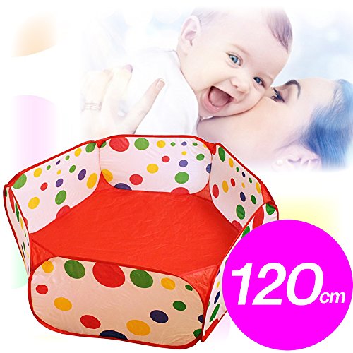 BYBREGAL® BABYLABEL 折りたたみ ボールプール/ベビーサークル/プレイヤード (必要な時にパッと広げて使える!)【選べる3サイズ/水玉カラフル】簡単収納/折りたたみ/軽量/持ち運び/おもちゃ箱/屋外屋内/知育玩具 (1.2m)