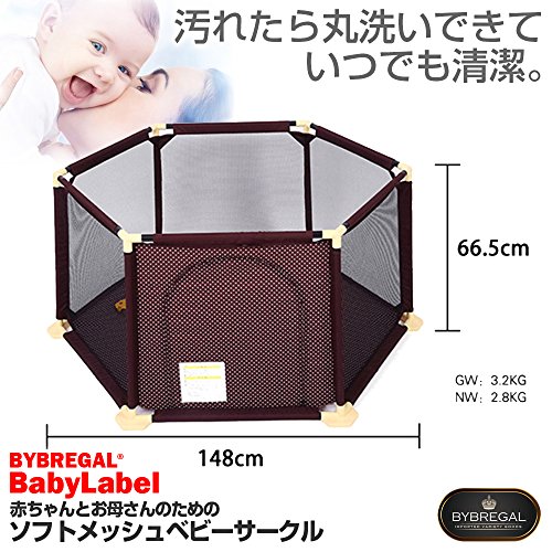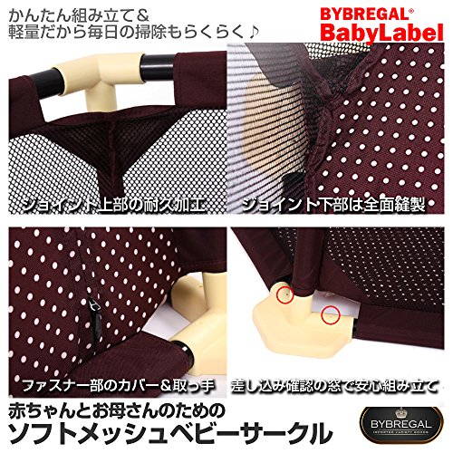 BYBREGAL® BABYLABEL 洗えて清潔! ソフトメッシュベビーサークル <簡単組み立て!> 【ベビーフェンス/ベビーガード/プレイヤード】 収納/折りたたみ/軽量/持ち運び/おもちゃ箱/屋外 屋内/知育