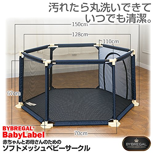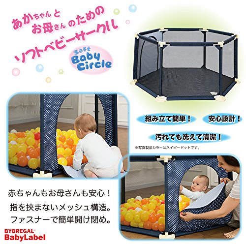 BYBREGAL 赤ちゃんとお母さんのための ソフトメッシュベビーサークル (ネイビードット)
