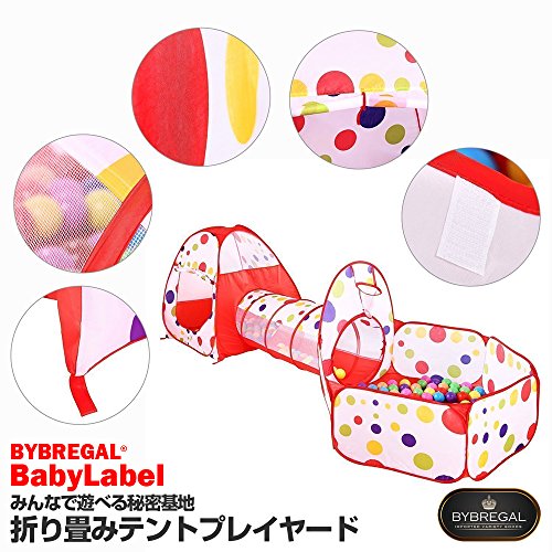 BYBREGAL® BABYLABEL みんなで遊べる秘密基地 折り畳みテントプレイヤード【つなげて遊べる3点セット/収納袋付き/レッド】簡単収納/折りたたみ/軽量/持ち運び/おもちゃ箱/屋外屋内/知育玩具