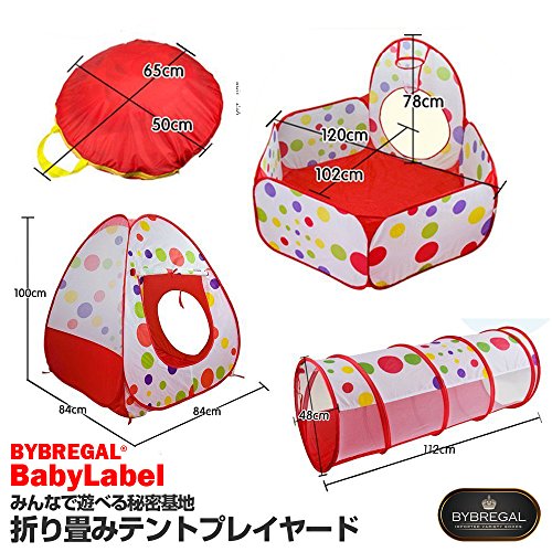 - 【サイズ】 テントプレイヤード:84CM*84CM*100CM トンネル:48CM(直径)*112CM(長さ) 六角形ボールプール&ゴールフープ:120CM(対角線)*102CM(対角線)* 78CM(高さ) パッケージサイズ: 65*50*5cm BYBREGAL®品質保証書付き/ 商標登録済み第5910643号