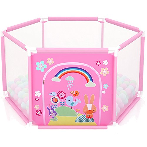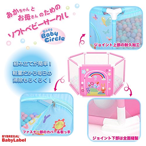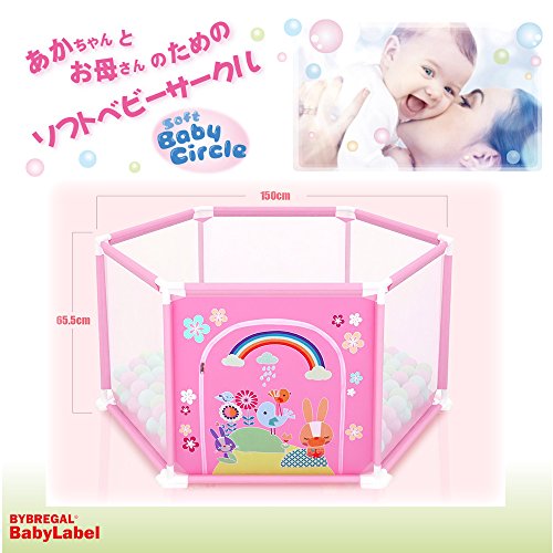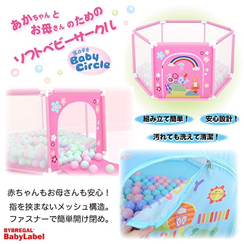 BYBREGAL® BABYLABEL 洗えて清潔! ソフトメッシュベビーサークル 【待望の新色入荷/カラフルシリーズ】<簡単組み立て!> 【ベビーフェンス/ベビーガード/プレイヤード】 収納/折りたたみ/軽量/持ち運び/おもちゃ箱/屋外 屋内/知育 (ラブリーピンク)
