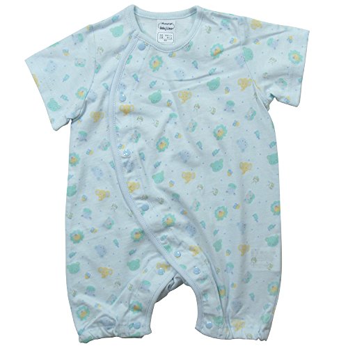 《年間定番》Babbun(バブーン)40/2天竺アニマル顔Ptフィットオール 60cm /サックス NO.KK-31-2421