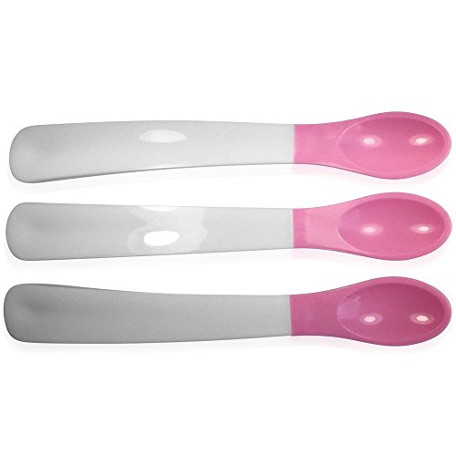 LIMITED EDITION 3 White/Pink First Stage Baby Spoons. Perfect for baby girls because of the pink colors. Great Baby Shower Gift! Suitable for infants 4 months and up. The bowl of the spoon is fairly flat so it's easy to feed baby.;Safe for Baby and Planet: Toxin-Free, BPA & BPS Free, and PVC Free means baby can chew away without worry. FDA Approved.;Play More, Scrub Less: toss in the dishwasher for easy clean Less Mess, and Less Worry: Because BabieB says try it for 30 days and Love it, or your Money Back