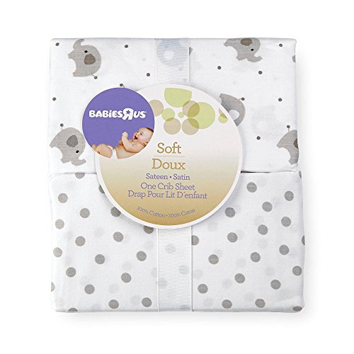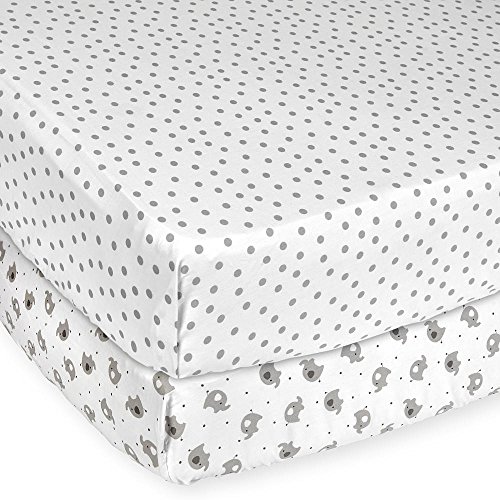 ベビーベッド用ボックスシーツ サテンのような肌触り 綿100% 2枚組 (Gray Elephant/Dot) [並行輸入品]