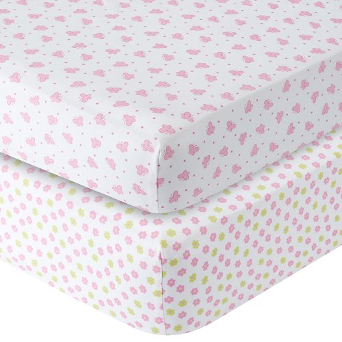 ベビーベッド用ボックスシーツ サテンのような肌触り 綿100% 2枚組 (Floral/Butterfly) [並行輸入品]