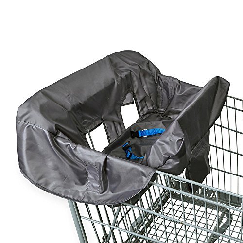 Full size shopping cart and high-chair cover;Leg-flaps to prevent pinching and fully cover seats;Hook and loop attachments so cover easily stays in place;2 sets of strap holes for compatibility with most shopping carts and high chairs;Convenient, attached travel pouch