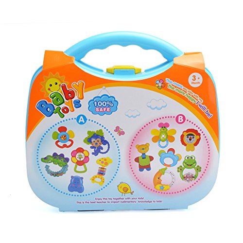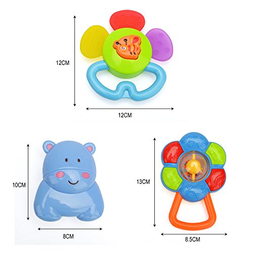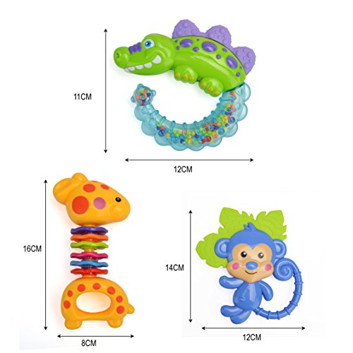 お猿、ワニ、カバ、キリン、お花(☺)と(ハチ)、鮮やかな色、かわいい形、シャカシャカの音で赤ちゃんはすぐ夢中になります!