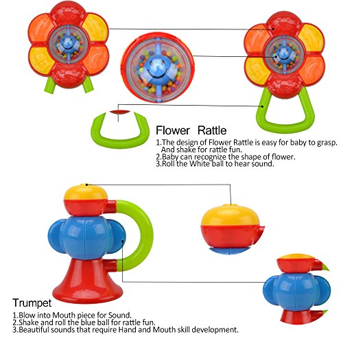 赤ちゃんの一番成長が期待できる時期に、ガラガラは赤ちゃんの「見る」「聴く」「触る」「たたく」「つかむ」といった五感をバランスよく刺激して、心身の健やかな成長を促してくれるのです。