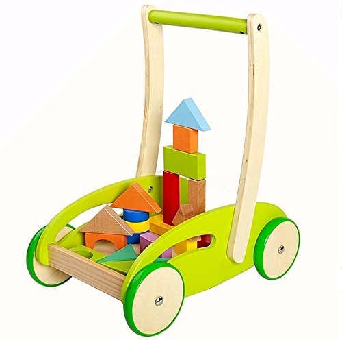 Wishtime 積み木遊びの手押し車 木製 ベビー ウォーカー 幼児 つかまり立ち 木のおもちゃ