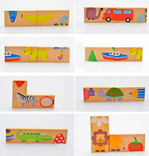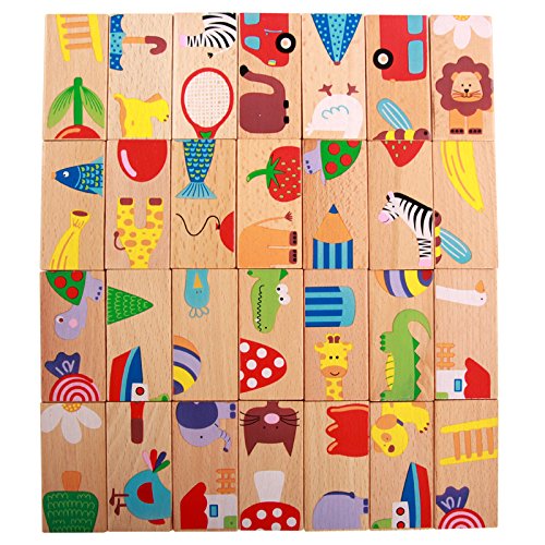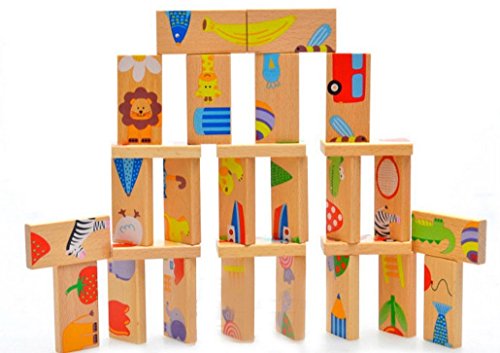 Wishtime 幼児 動物積み木 28個セット ブロック 木のおもちゃ デラックスセット パズル ドミノ 知育 玩具