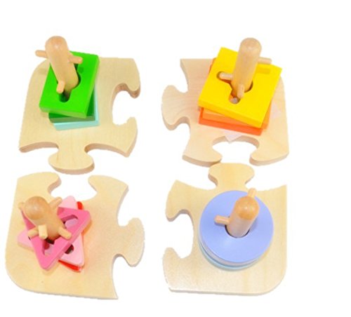 - 1、数の概念を学べる知育玩具。4種の鮮やかな色の幾何学形のパネルを組み合わせて、それぞれ積み重ねて遊びます。