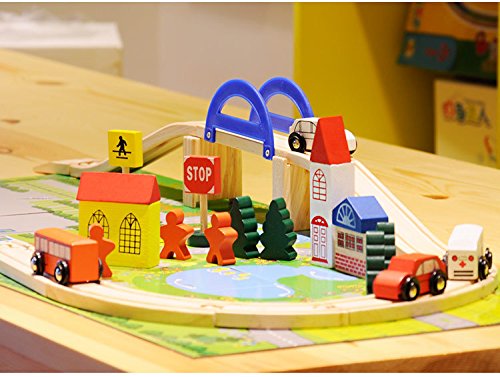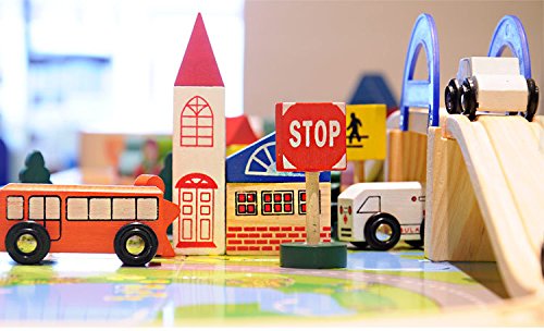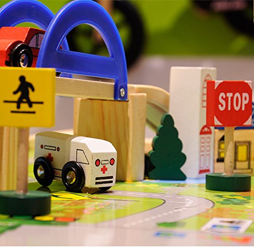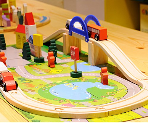Wishtime 人気のレールセット 木のおもちゃ 仕掛けいっぱい 坂道レール 都市マップ 積み木 パズル ブロック 知育 玩具