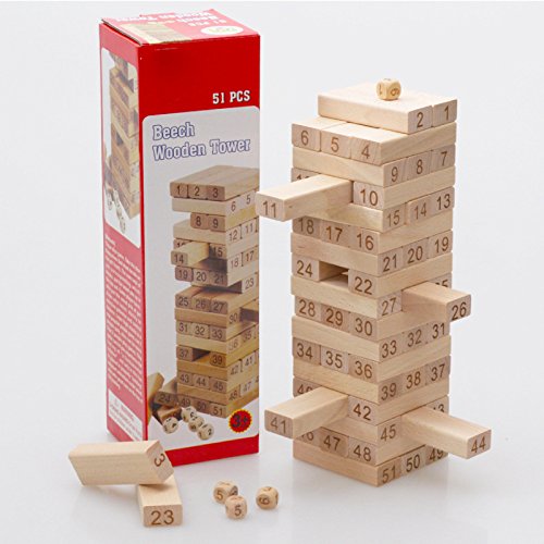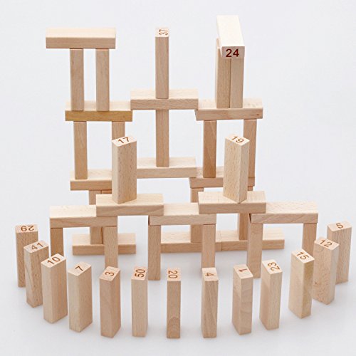 Wishtime 子供 数字ジェンガ 51点セット ブロック 積み木 ドミノ 木製 バランスゲーム 大人も楽しめる