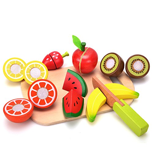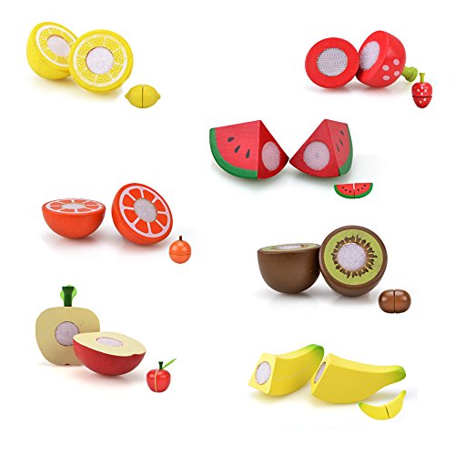 Wishtime 果物ままごと 9点セット キッチンごっこ 木製 マジックテープ式 幼児 木のおもちゃ 知育玩具 入園祝い