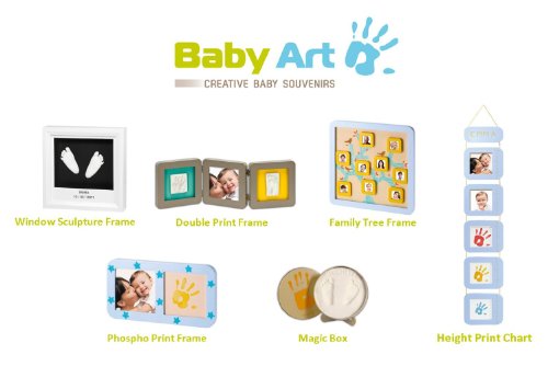 Baby Artの身長プリントチャートセットにはお子様の成長を測るための身長チャート、4つのフォトフレーム、お子様の手型・足型のプリントを作る材料がついてきます。お子様の成長を楽しく記録し、保存できるセットです。ナーサリーや子供部屋の壁を飾るのにも最適です。