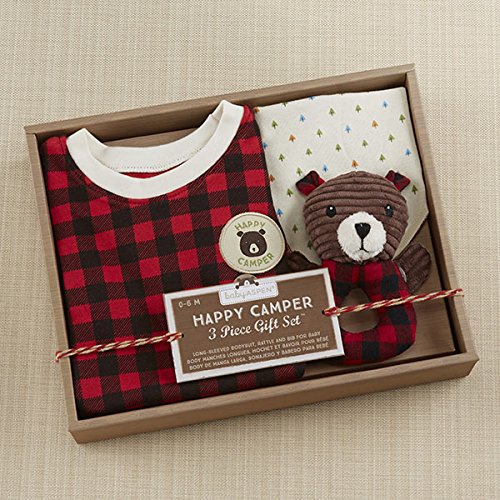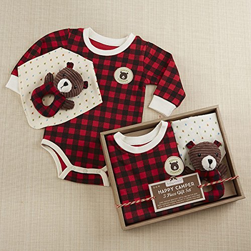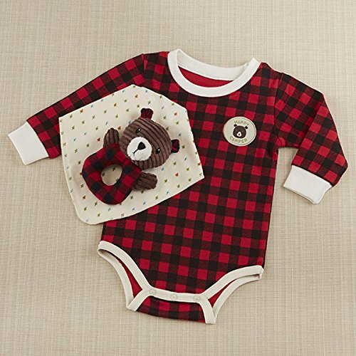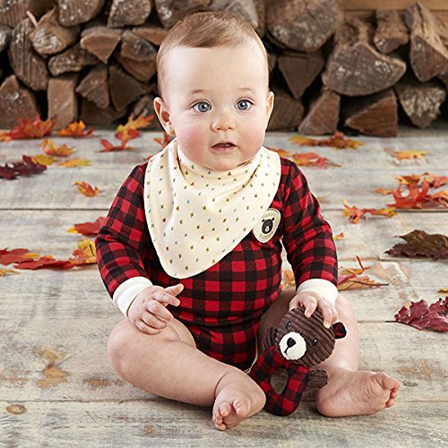 ベビーアスペン Baby Aspen 男の子用赤x黒チェック柄クマさん長袖ボディスーツxバンダナ風スタイxラトル豪華3点セット(ギフトBOX入り) [並行輸入品]