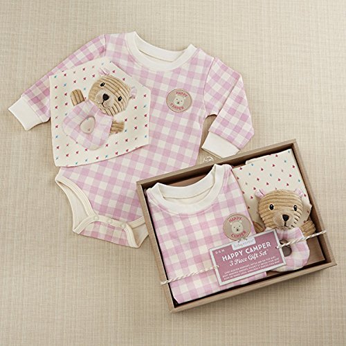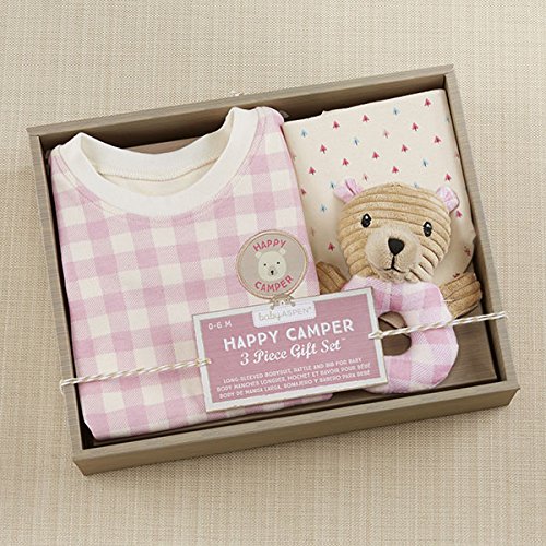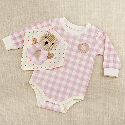 ベビーアスペン Baby Aspen 女の子用ピンクチェック柄クマさん長袖ボディスーツxバンダナ風スタイxラトル豪華3点セット(ギフトBOX入り) [並行輸入品]