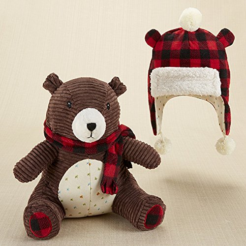 ベビーアスペン Baby Aspen 男の子用クマさんぬいぐるみとポンポン付きフリースベビーハット豪華2点セット [並行輸入品]
