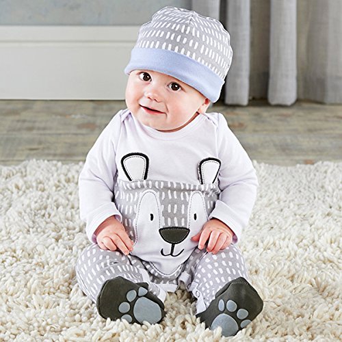 ベビーアスペン Baby Aspen 男の子用トレンディベビーベア足つきカバーオールxベビーキャップ豪華2点セット(ギフトBOX入り) [並行輸入品]