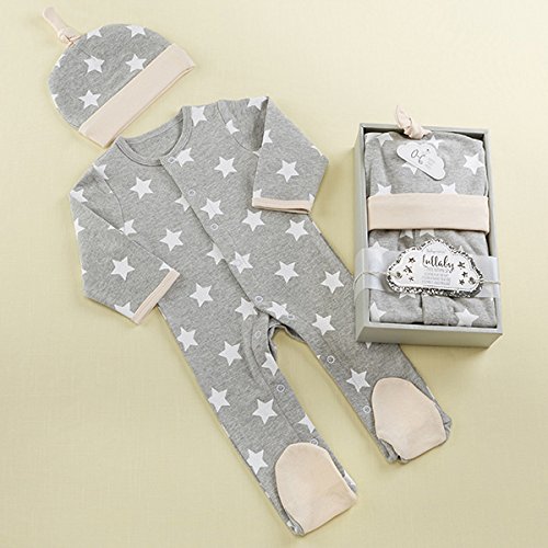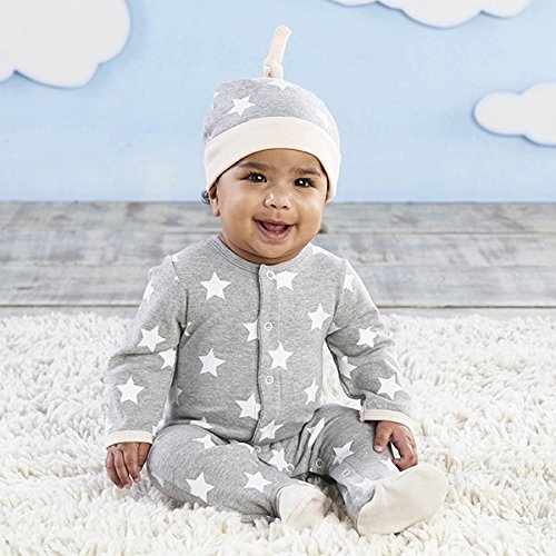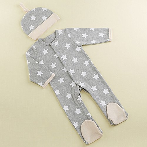 ベビーアスペン Baby Aspen 女の子用グレー星柄xベビーピンクリンガー前開き足つきカバーオールx3D立体キャップ豪華2点セット(ギフトBOX入り) [並行輸入品]