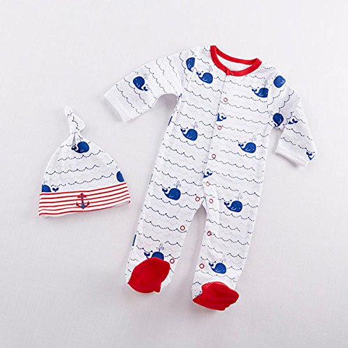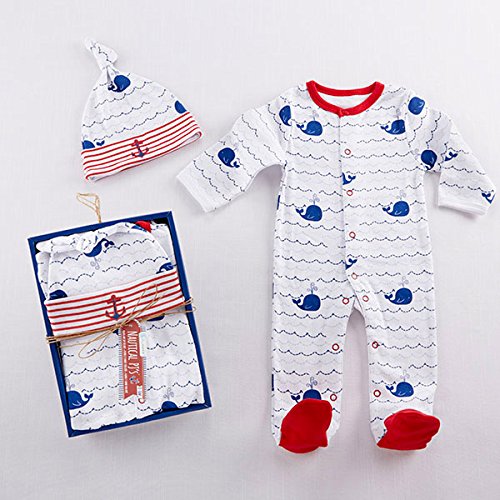 ベビーアスペン Baby Aspen 男の子用ナウティカボーイクジラさん前開き足つきカバーオールxベビーキャップ豪華2点セット(ギフトBOX入り) [並行輸入品]