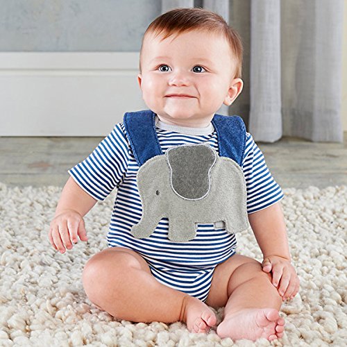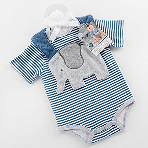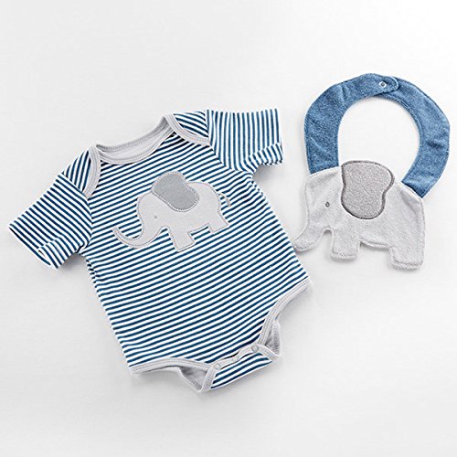 ベビーアスペン Baby Aspen 男の子用紺x白ボーダーリトルピーナッツぞうさん半袖ボディスーツxスタイ2点セット [並行輸入品]