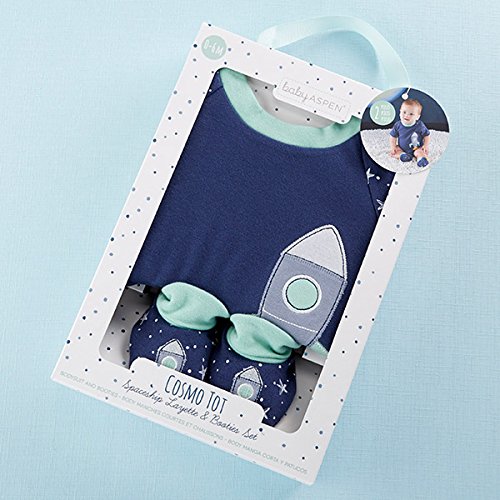 ベビーアスペン Baby Aspen 男の子用紺スペースシップロケット半袖ボディスーツxブーティ2点セット(ギフトボックス入り) [並行輸入品]