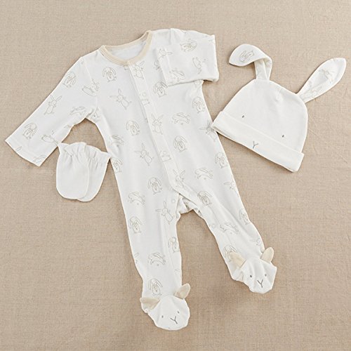 - ☆便利な前開き足つきカバーオール、バニーちゃんの耳が付いたベビーハット、ミトンの計3点がセットになっています♪♪