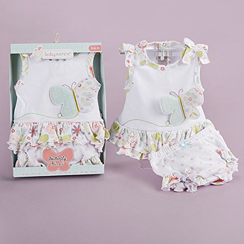 ベビーアスペン Baby Aspen 女の子用3D立体蝶アップリケ付きバタフライキッス花柄チュニックxフリル付きブルマー上下2点セット [並行輸入品]