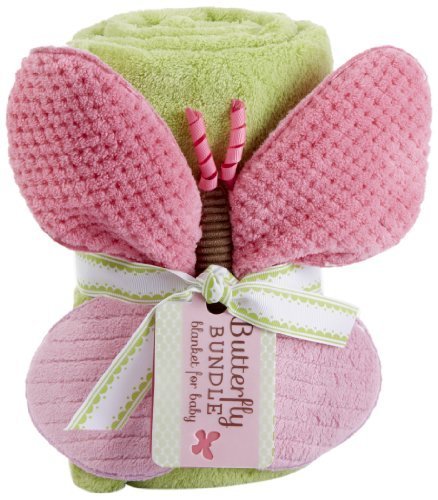 Baby Aspen, Butterfly Plush Velour Baby Blanket, Green/Pink, One Size (Discontinued by Manufacturer) by Baby Aspen