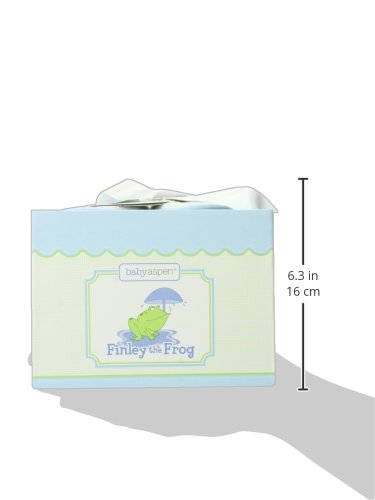 Hoppiness is a frog named Finley, and he's here to to take tub time to new heights! Baby Aspen's friendly frog helps baby go from puddle to cuddle with terrycloth towels and slippers adorned with Finley's fabulous face. Features and facts: Charming four-piece gift set with terrycloth hooded towel, washcloth and pair of slippers. Hooded towel and slippers have adorable appliques of Finley sitting under a mushroom "umbrella". Hoodie towel with pink striping measures 30" square; hood measures 6" deep. Terry washcloth measures 7" x 6 1/8". Reusable blue-and-green gift box with bellyband tied with white-grosgrain ribbon measures 5" h x 7" w x 7" d.