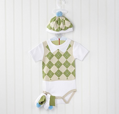 Baby Aspen Three Piece Layette Set in Golf Cart Package, Green/White, 0-6 Mos.