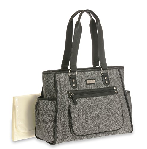 Fashionable Woven Herringbone fabric;Spacious main compartment;multiple exterior compartments;Diaper changer pad and dirty duds pouch included;16 w x 13 h x 6 d