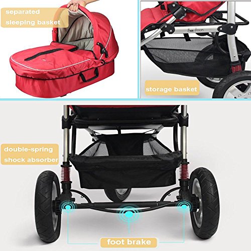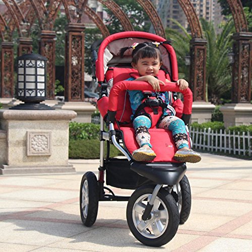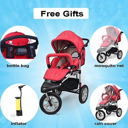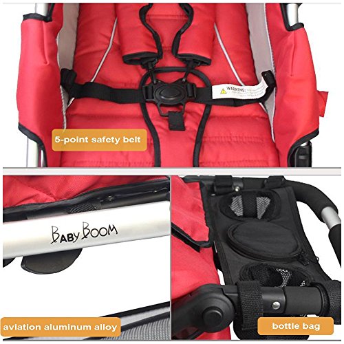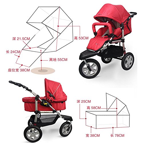 1:Our strollers are with higher ground clearance than others, which can protect you baby from the air pollution and can have a broad view.