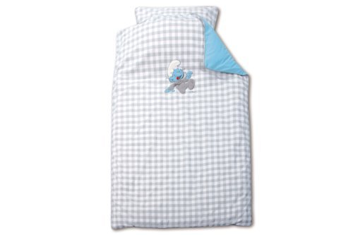 - Baby Boum 100 x 140cm Cot Bed Duvet Set with Smurf Appliqu? (Blue)