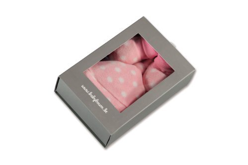 - Baby Boum Luxury Micro Breathable Polar Fleece Newborn Hat and Booties Gift Box in Spotty Design (Candy Pink)